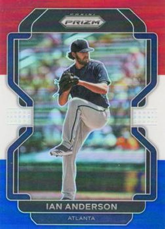 The Ian Anderson 2022 Prizm #22 Red White Blue card is 1 of 43 Ian Anderson's card variations in the 2022 Prizm set being tracked by Sports Card Investor, including Base, Blue, Blue Velocity, Carolina Blue, and Cosmic Haze.