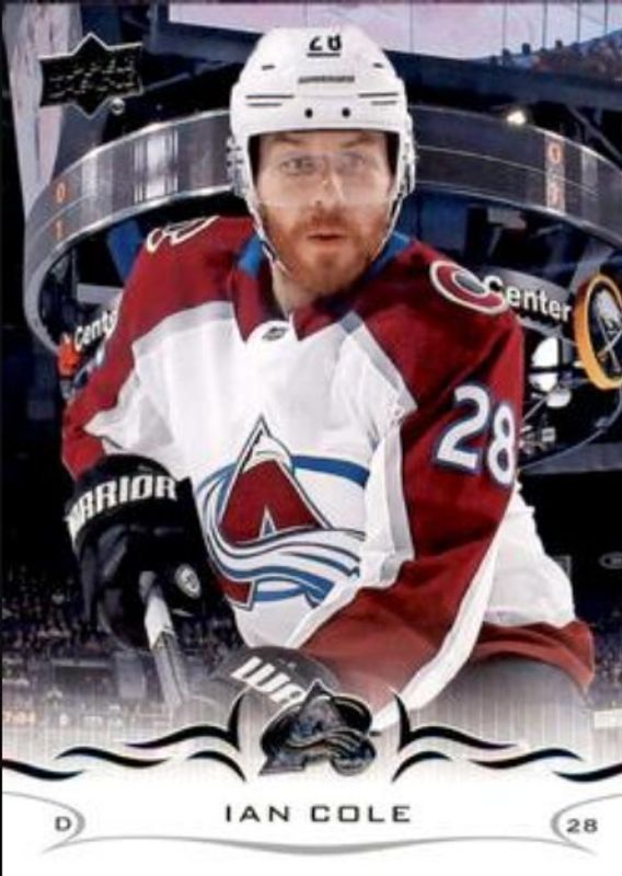 The Ian Cole 2018 Upper Deck #302 Base card is 1 of 6 Ian Cole's card variations in the 2018 Upper Deck set being tracked by Sports Card Investor, including Clear Cut, Silver Foil, Speckled Rainbow Foil, UD Exclusives /100, and UD High Gloss /10.