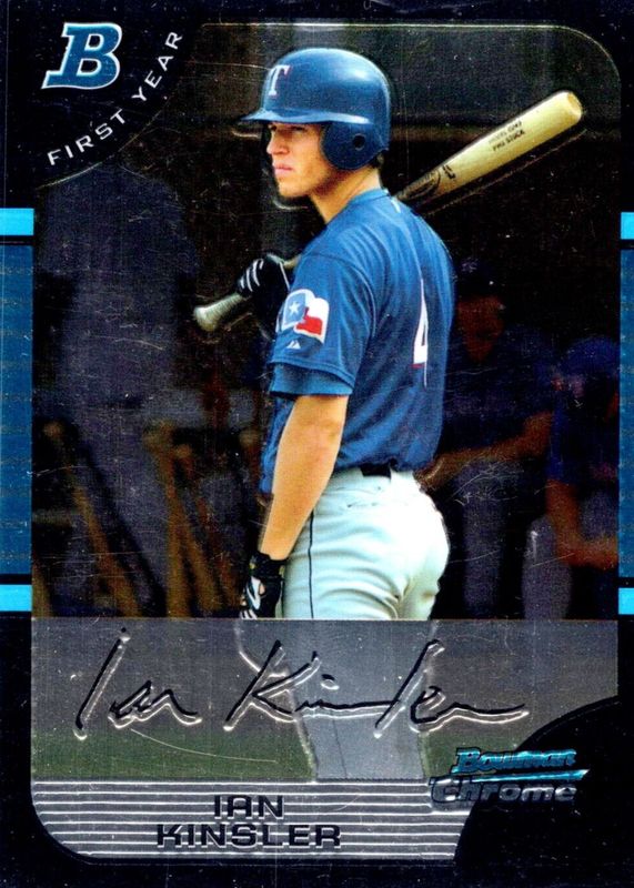 This card is 1 of 7 Ian Kinsler's card variations in the 2005 Bowman Chrome set being tracked by Sports Card Investor, including Refractor (1st), X-Fractor /225 (1st), Blue Refractor /150 (1st), Gold Refractor /50 (1st), and Red Refractor /5 (1st).