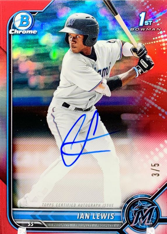 Ian Lewis 2022 Bowman Chrome #CPA-IL Prospect Auto - Red Refractor /5 (1st) RAW Price Guide