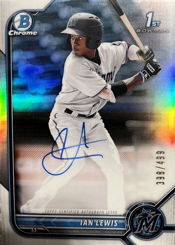 2022 1st Bowman Chrome ~ Ian Lewis ~ Refractor /499 ~ #CPA-IL ~ Marlins ~ Auto