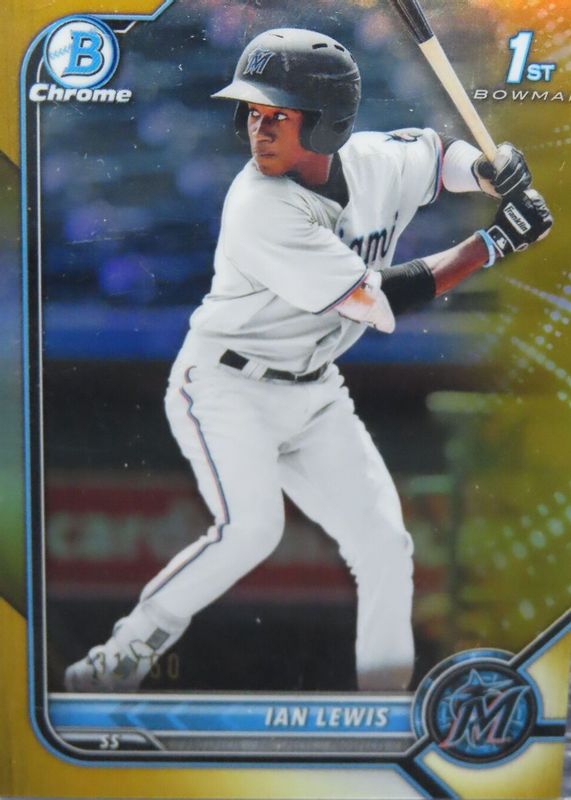 The Ian Lewis 2022 Bowman #BCP-96 Chrome Prospects - Gold Refractor /50 (1st) card in Raw condition has not changed in price in the last 30 days and was last sold for $35.00 .