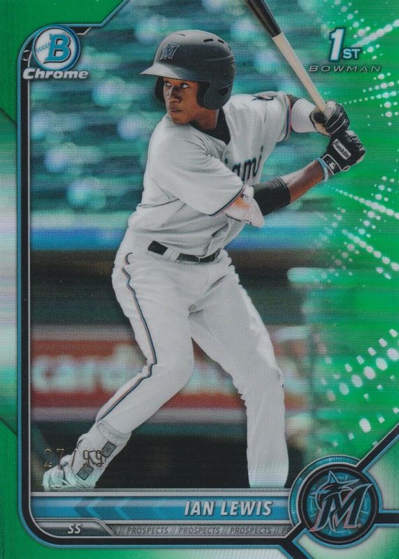 2022 Bowman Chrome Ian Lewis BCP-96 Green Refractor 14/99 1st Bowman Marlins