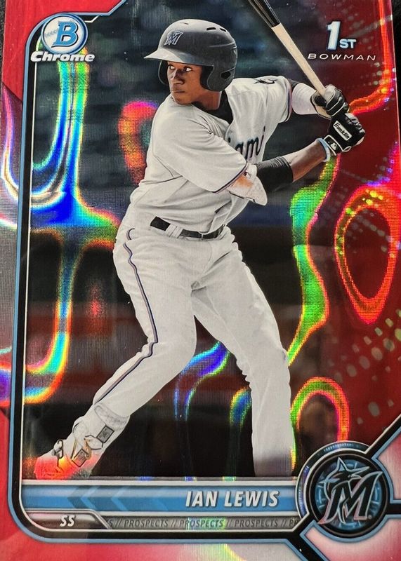 Ian Lewis 2022 Bowman #BCP-96 Chrome Prospects - Red Lava Refractor /5 (1st) RAW Price Guide