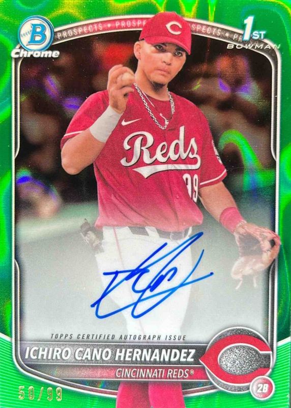 2025 BOWMAN CHROME ICHIRO CANO HERNANDEZ 1ST GREEN LAVA AUTO /99