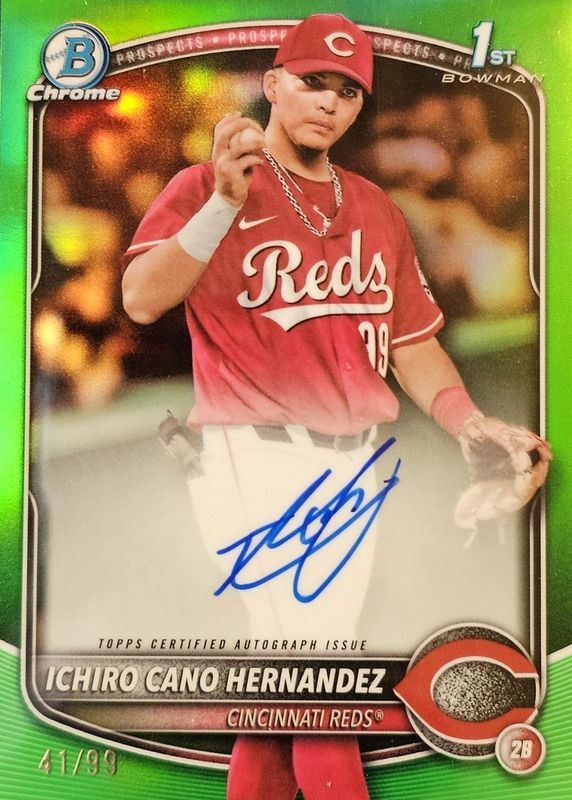 2025 Bowman Chrome Ichiro Cano Hernandez 1st Green On Card Rookie Auto 50/99 Red