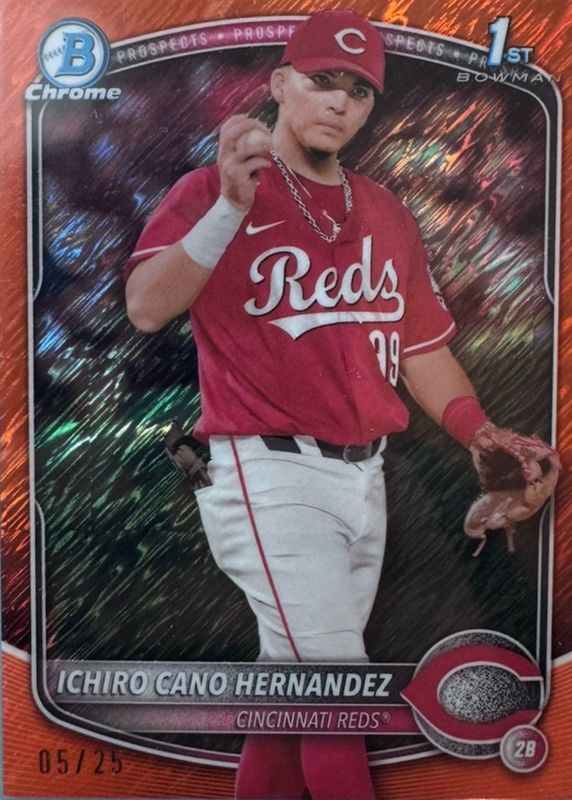 2025 Bowman Chrome Ichiro Cano Hernandez Orange Shimmer Auto /25 1st Reds