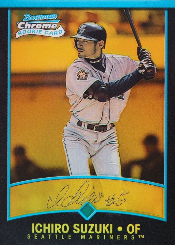 This card is 1 of 6 Ichiro Suzuki's card variations in the 2001 Bowman Chrome set being tracked by Sports Card Investor, including Refractor, Refractor (Japanese), X-Fractor, X-Fractor (Japanese), and Gold Refractor (Japanese) /99.