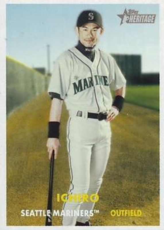 The Ichiro Suzuki 2006 Topps Heritage #250 Base card is 1 of 5 Ichiro Suzuki's card variations in the 2006 Topps Heritage set being tracked by Sports Card Investor, including New Age Performers, Chrome /1957, Chrome Refractor /557, and Chrome Black Refractor /57.