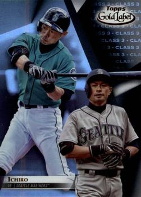 The Ichiro Suzuki 2018 Topps Gold Label #85 Class 3 - Black card is 1 of 21 Ichiro Suzuki's card variations in the 2018 Topps Gold Label set being tracked by Sports Card Investor, including Class 1, Class 2, Class 3, Class 1 - Black, and Class 2 - Black.