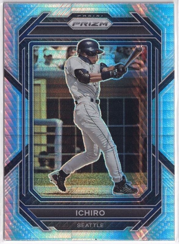The Ichiro Suzuki 2023 Prizm #32 Hyper card is 1 of 40 Ichiro Suzuki's card variations in the 2023 Prizm set being tracked by Sports Card Investor, including Base, Blue Ice, Giraffe, Green Ice, and Ice.