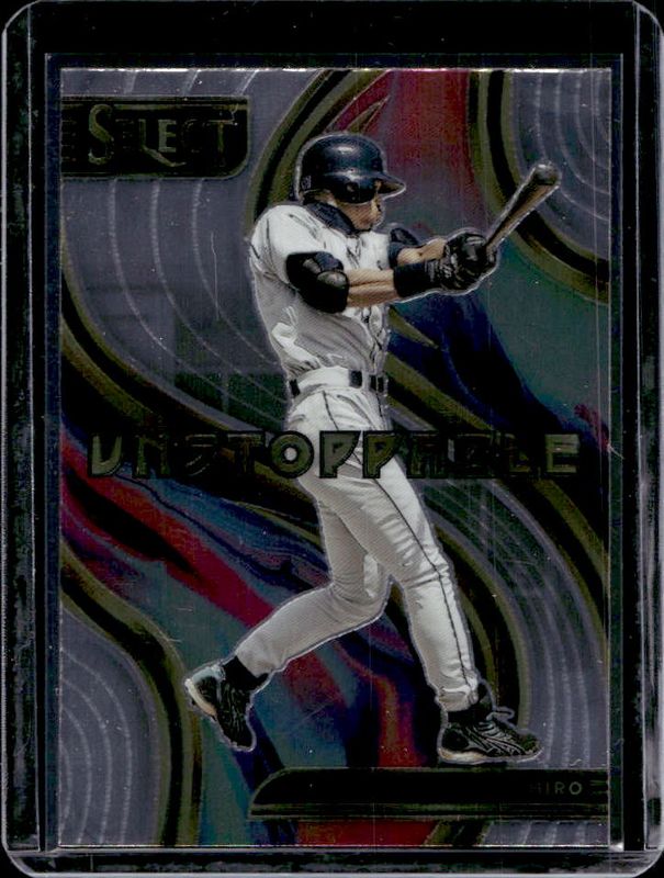 The Ichiro Suzuki 2023 Select #SU17 Unstoppable card is 1 of 34 Ichiro Suzuki's card variations in the 2023 Select set being tracked by Sports Card Investor, including Concourse, Concourse - Blue, Concourse - Elephant, Concourse - Orange Flash, and Concourse - Scope.