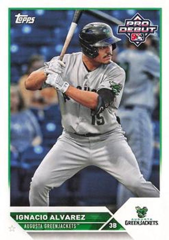 The Ignacio Alvarez 2023 Topps Pro Debut #PD-106 Base card is 1 of 28 Ignacio Alvarez's card variations in the 2023 Topps Pro Debut set being tracked by Sports Card Investor, including Fuchsia /199, Sparkle /175, Blue /150, Green /99, and Aqua /75.