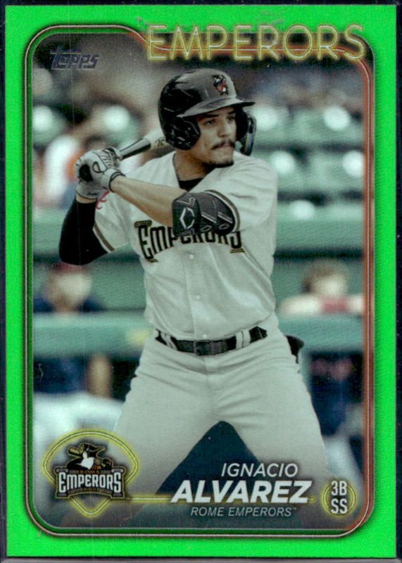 The Ignacio Alvarez 2024 Topps Pro Debut #PD-186 Green Foil /99 card is 1 of 28 Ignacio Alvarez's card variations in the 2024 Topps Pro Debut set being tracked by Sports Card Investor, including Base, Fuchsia Foil /199, Sparkle Foil /175, Blue Foil /150, and Aqua Foil /75.