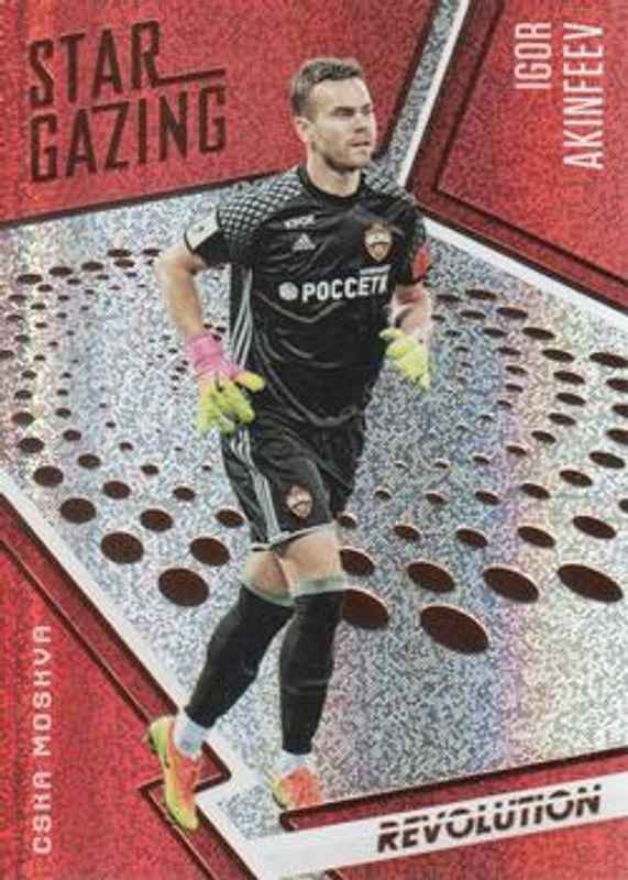 The Igor Akinfeev 2017 Revolution #SG-17 Star-Gazing card is 1 of 17 Igor Akinfeev's card variations in the 2017 Revolution set being tracked by Sports Card Investor, including Base, Astro, Fractal, Hyperplaid, and Infinite.
