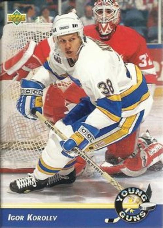 The Igor Korolev 1992 Upper Deck #581 Base Rookie card is 1 of 4 Igor Korolev's card variations in the 1992 Upper Deck set being tracked by Sports Card Investor, including Base, Calder Candidates, and Euro Rookies.