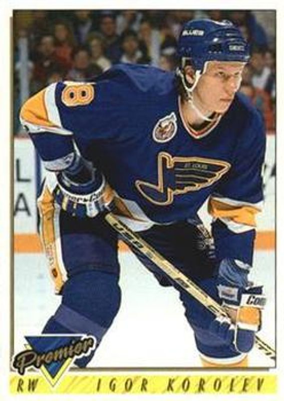 The Igor Korolev 1993 Topps Premier #409 Base card is 1 of 2 Igor Korolev's card variations in the 1993 Topps Premier set being tracked by Sports Card Investor, including Gold.