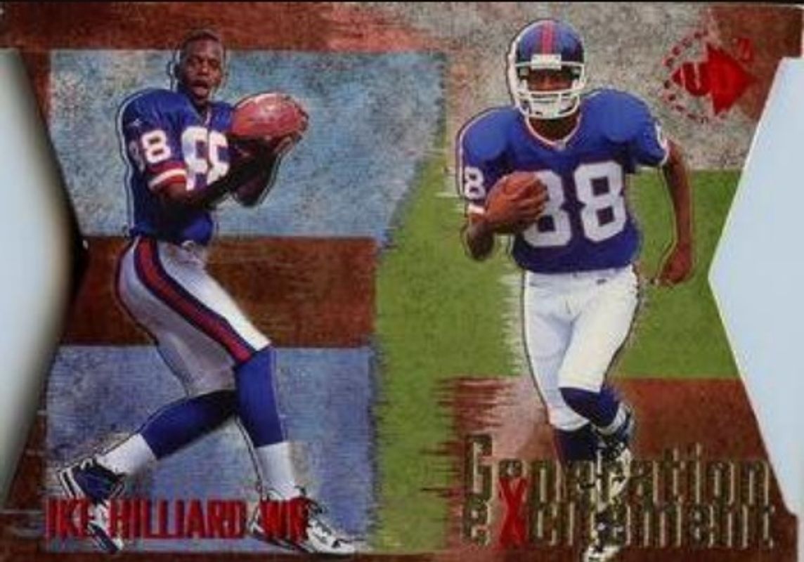 The Ike Hilliard 1997 Upper Deck UD3 #GE5 Generation Excitement Rookie card is 1 of 2 Ike Hilliard's card variations in the 1997 Upper Deck UD3 set being tracked by Sports Card Investor, including Base.