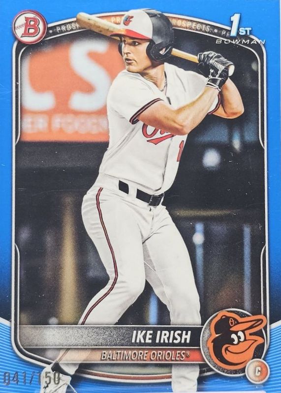 Best Prices Available For Sale of Ike Irish 2025 Bowman Draft #BD-16 Blue Border /150 (1st)