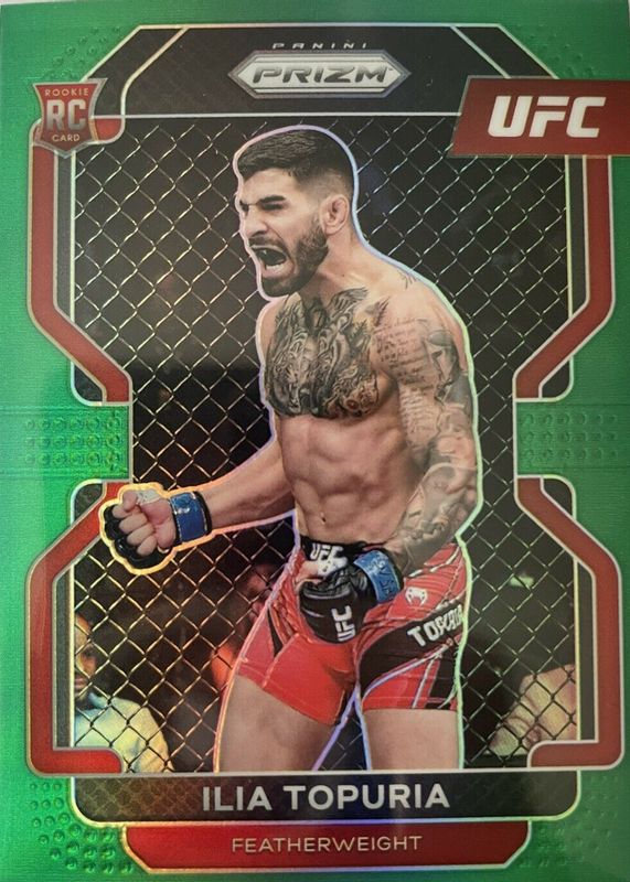 The Ilia Topuria 2022 Prizm UFC #115 Green Rookie card in Raw condition has not changed in price in the last 30 days and was last sold for $37.97 .