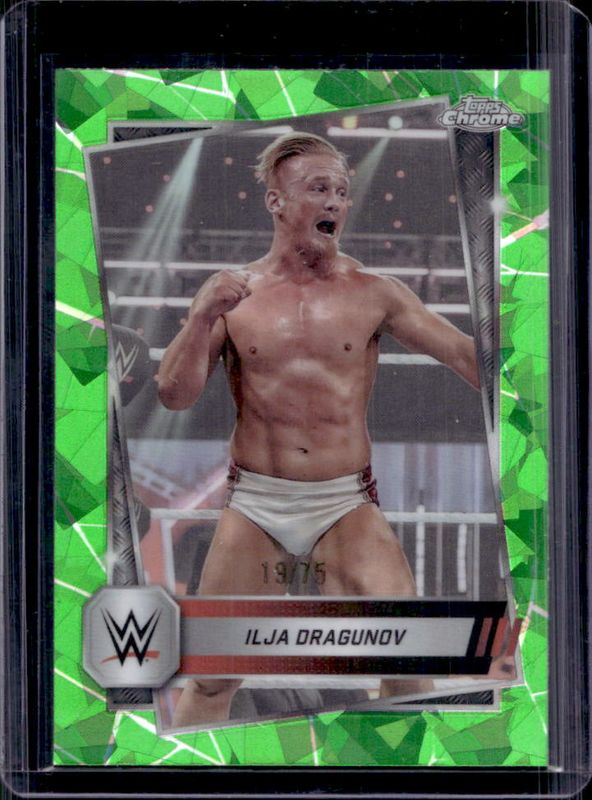 The Ilja Dragunov 2025 Topps Chrome WWE Sapphire Edition #47 Base Chrome - Green Refractor /75 card is 1 of 7 Ilja Dragunov's card variations in the 2025 Topps Chrome WWE Sapphire Edition set being tracked by Sports Card Investor, including Base Chrome, Base Chrome - Gold Refractor /50, Base Chrome - Orange Refractor /25, Base Chrome - Purple Refractor /10, and Base Chrome - Red Refractor /5.