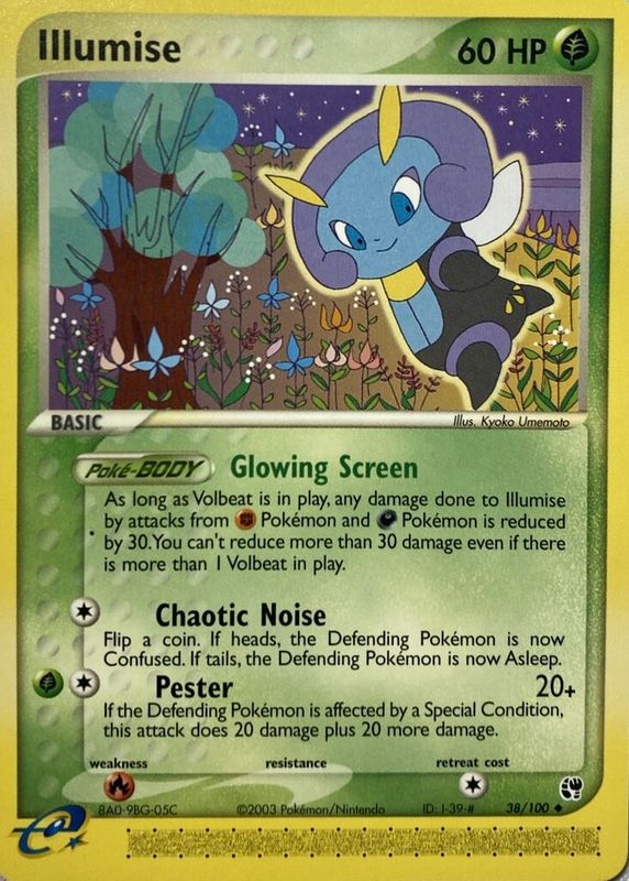The Illumise 2003 EX: Sandstorm #038/100 Base card in Raw TCG (Near Mint) condition has moved up $1.23 (+32.5%) in the last 30 days and was last sold for $5.02 .