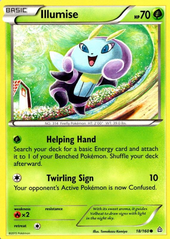 The Illumise 2015 XY: Primal Clash #018/160 Base card in Raw TCG (Lightly Played) condition has moved up $0.46 (+33.1%) in the last 30 days and was last sold for $1.85 .