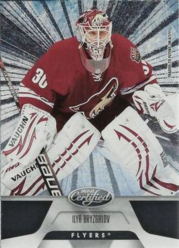 The Ilya Bryzgalov 2011 Certified #106 Totally Silver card is 1 of 39 Ilya Bryzgalov's card variations in the 2011 Certified set being tracked by Sports Card Investor, including Base /499, Mirror Red /199, Mirror Red Materials Dual /150, Mirror Blue /99, and Mirror Blue Materials /99.