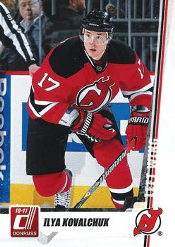 The Ilya Kovalchuk 2010 Donruss #57 Base card is 1 of 4 Ilya Kovalchuk's card variations in the 2010 Donruss set being tracked by Sports Card Investor, including Press Proofs /100, die-cut Gems /30, and die-cut Gems Autographs /25.