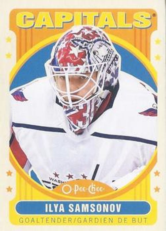 The Ilya Samsonov 2021 O-Pee-Chee Retro Blank Back card is 1 of 16 Ilya Samsonov's card variations in the 2021 O-Pee-Chee set being tracked by Sports Card Investor, including Base, Blue Border, Red Border, Retro, and Retro Black Border /100.