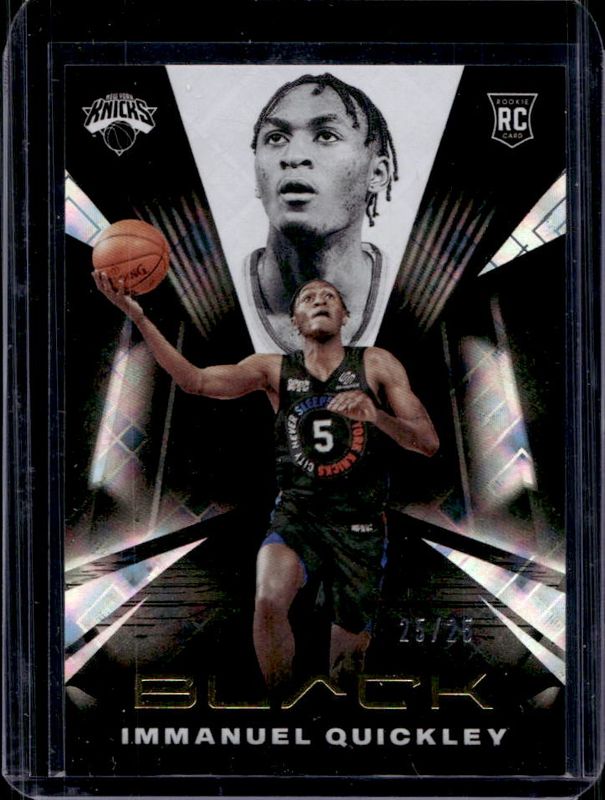 The Immanuel Quickley 2020 Black #69 Diamond Awe /25 Rookie card is 1 of 24 Immanuel Quickley's card variations in the 2020 Black set being tracked by Sports Card Investor, including Base /149, Swirlorama /65, Rainbow Spokes /49, Small Hyperplaid /5, and Fractal /1.