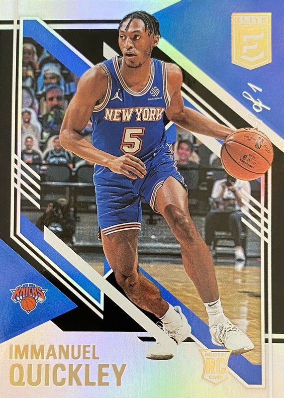 This card is 1 of 15 Immanuel Quickley's card variations in the 2020 Elite set being tracked by Sports Card Investor, including Base, Base Rookie /299, Aspirations (/95), Red, and Status (/5).