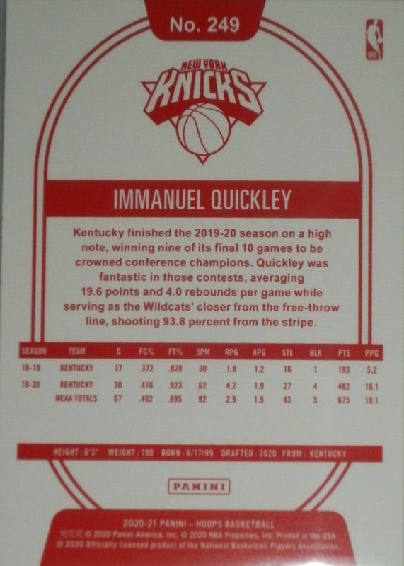Immanuel Quickley 2020 Hoops #249 Red Back Rookie RAW Price Guide