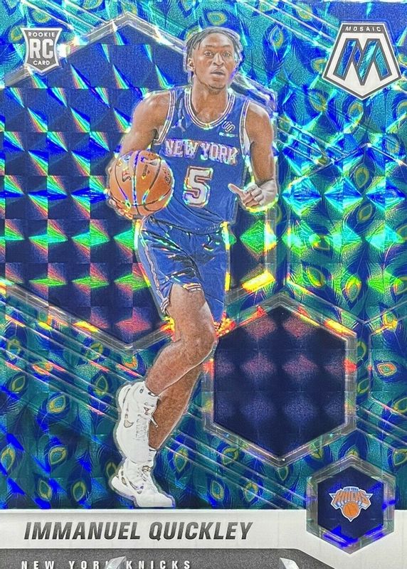 The Immanuel Quickley 2020 Mosaic #208 Choice Peacock /(SSP) Rookie card in Raw condition has not changed in price in the last 30 days and was last sold for $91.00 .