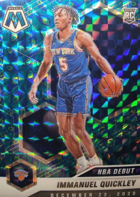 The Immanuel Quickley 2020 Mosaic #277 NBA Debut - Choice Peacock /(SSP) Rookie card in Raw condition has not changed in price in the last 30 days and was last sold for $51.99 .