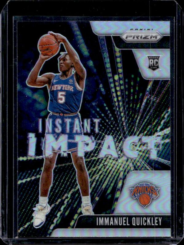 The Immanuel Quickley 2020 Prizm #20 Instant Impact - Silver Rookie card is 1 of 76 Immanuel Quickley's card variations in the 2020 Prizm set being tracked by Sports Card Investor, including Base, Choice Blue Yellow Green, Fast Break, Green, and Green Ice.