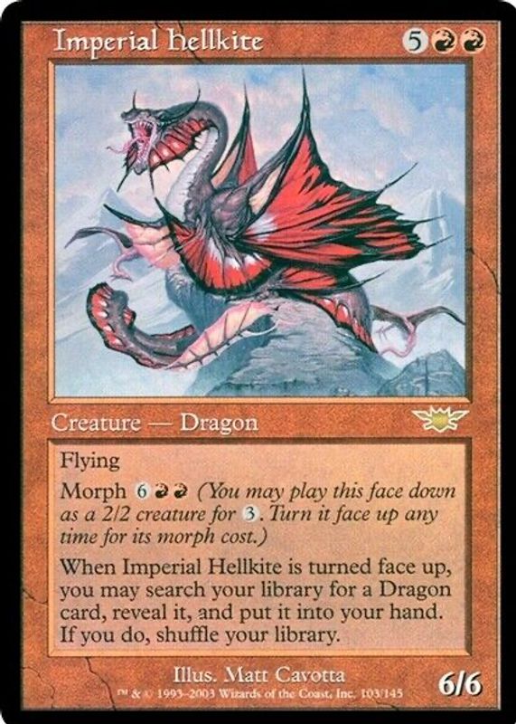 The Imperial Hellkite 2003 Legions #103 Base card in Raw TCG (Lightly Played) condition has not changed in price in the last 30 days and was last sold for $0.99 .