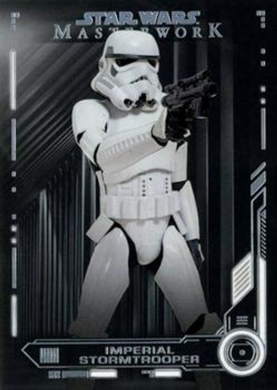 The Imperial Stormtrooper 2019 Topps Star Wars Masterwork #27 Base card is 1 of 11 Imperial Stormtrooper's card variations in the 2019 Topps Star Wars Masterwork set being tracked by Sports Card Investor, including Blue, Green /99, Purple /50, Orange /10, and Black /5.