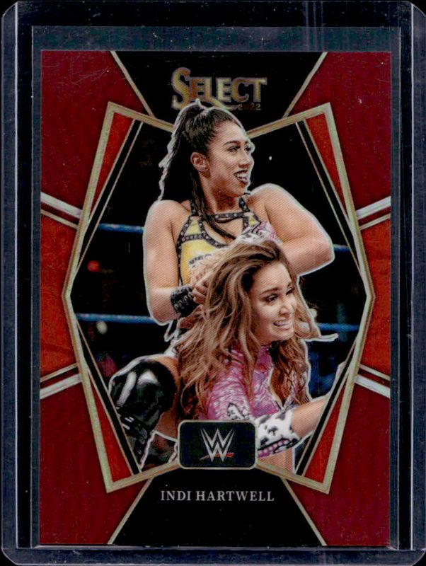 The Indi Hartwell 2022 Select WWE #173 Maroon /149 card is 1 of 71 Indi Hartwell's card variations in the 2022 Select WWE set being tracked by Sports Card Investor, including #49 Base, #298 Base, #173 Base, #173 Elephant, and #49 Elephant.