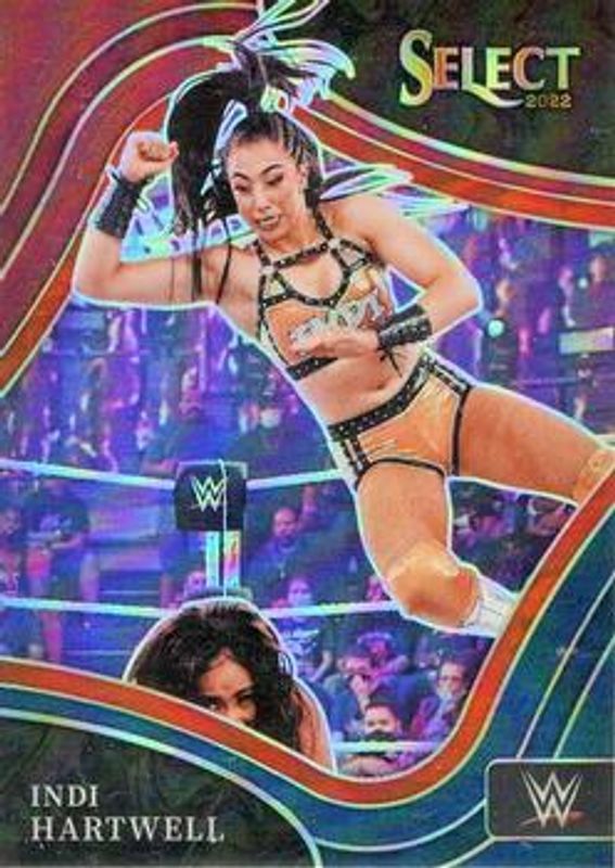 The Indi Hartwell 2022 Select WWE #298 Red & Blue card is 1 of 71 Indi Hartwell's card variations in the 2022 Select WWE set being tracked by Sports Card Investor, including #49 Base, #298 Base, #173 Base, #173 Elephant, and #49 Elephant.