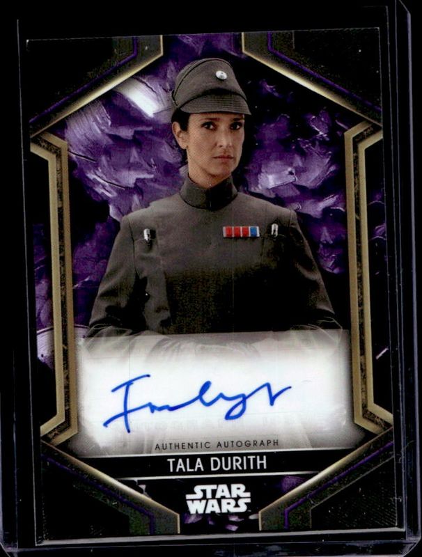 The Indira Varma 2023 Topps Star Wars: Obi-Wan Kenobi #A-IV Autographs - Purple /199 card is 1 of 12 Indira Varma's card variations in the 2023 Topps Star Wars: Obi-Wan Kenobi set being tracked by Sports Card Investor, including Autographs, Autographs - Red /99, Autographs - Green /75, Autographs - Orange /50, and Autographs - Silver /25.