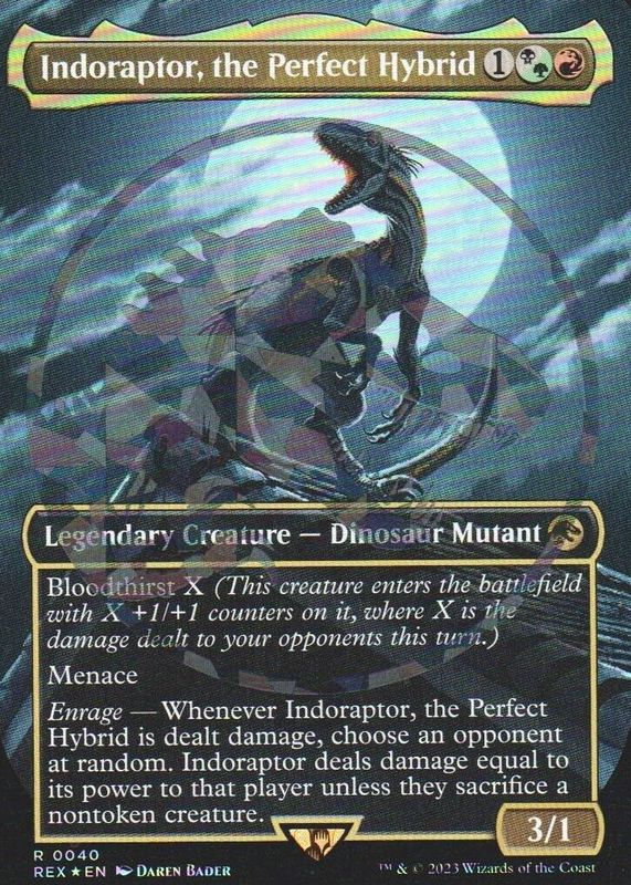 MTG Indoraptor, the Perfect Hybrid Borderless Jurassic World RARE EMBLEM FOIL