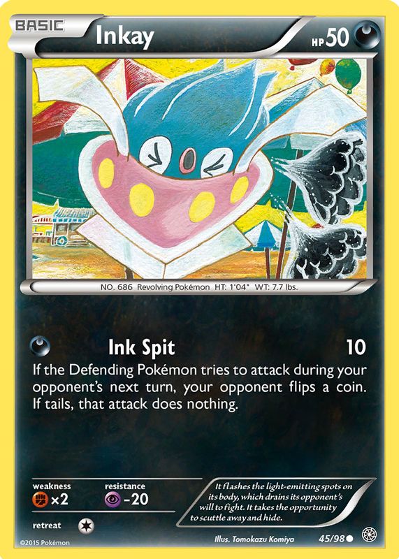 The Inkay 2015 XY: Ancient Origins #45/98 Base card in Raw TCG (Lightly Played) condition has not changed in price in the last 30 days and was last sold for $0.99 .