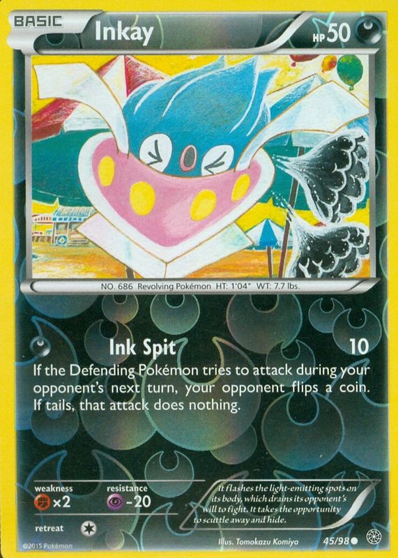 The Inkay 2015 XY: Ancient Origins #45/98 Reverse Holo card in Raw TCG (Lightly Played) condition has moved up $0.45 (+31.0%) in the last 30 days and was last sold for $1.90 .