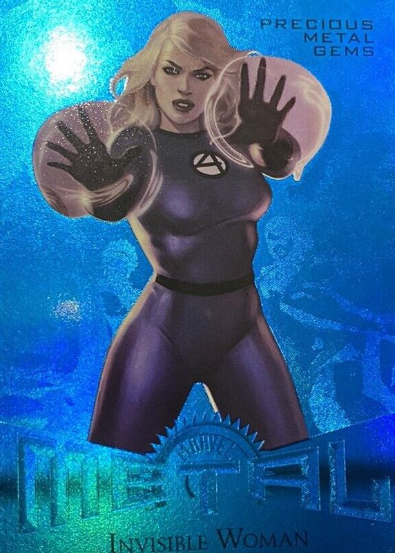 The Invisible Woman 2013 Fleer Retro #2 Precious Metal Gems Blue /50 card in Raw condition has not changed in price in the last 30 days and was last sold for $2,000.00 .