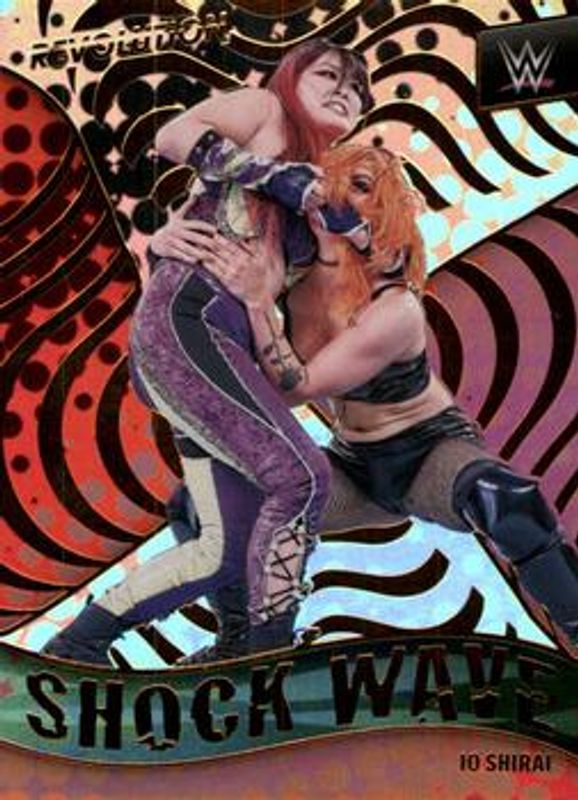 The Io Shirai 2022 Revolution WWE #25 Shock Wave card is 1 of 21 Io Shirai's card variations in the 2022 Revolution WWE set being tracked by Sports Card Investor, including Base, Astro, Fractal, Galactic, and Groove.