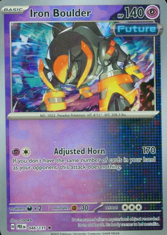 Iron Boulder 2025 Scarlet & Violet: Prismatic Evolutions #046/131 Poke Ball Reverse Holo RAW TCG (LIGHTLY PLAYED) Price Guide