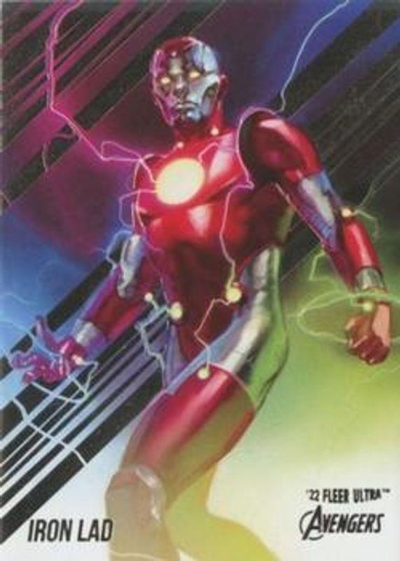 The Iron Lad 2022 Fleer Ultra Avengers #34 Base card is 1 of 28 Iron Lad's card variations in the 2022 Fleer Ultra Avengers set being tracked by Sports Card Investor, including Gold Rainbow Foil, Green Foil, Rainbow Foil, Orange Foil /549, and Blue Foil /360.