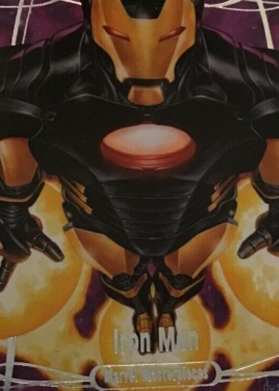 This card is 1 of 9 Iron Man's card variations in the 2016 Upper Deck Marvel Masterpieces set being tracked by Sports Card Investor, including Gold Foil Signature, Epic Purple Foil /199, Orange Foil /99, Speckle Holofoil /99, and Canvas.
