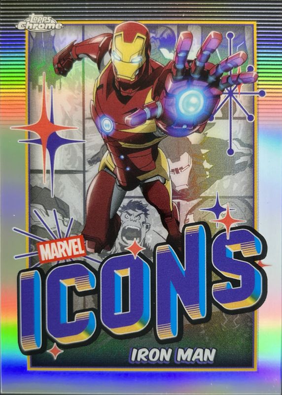 The Iron Man 2025 Topps Chrome #MI-7 Marvel Icons card is 1 of 111 Iron Man's card variations in the 2025 Topps Chrome set being tracked by Sports Card Investor, including Base, Refractor, Yellow Lava Refractor, Spider Web Refractor /399, and Blue Refractor /299.